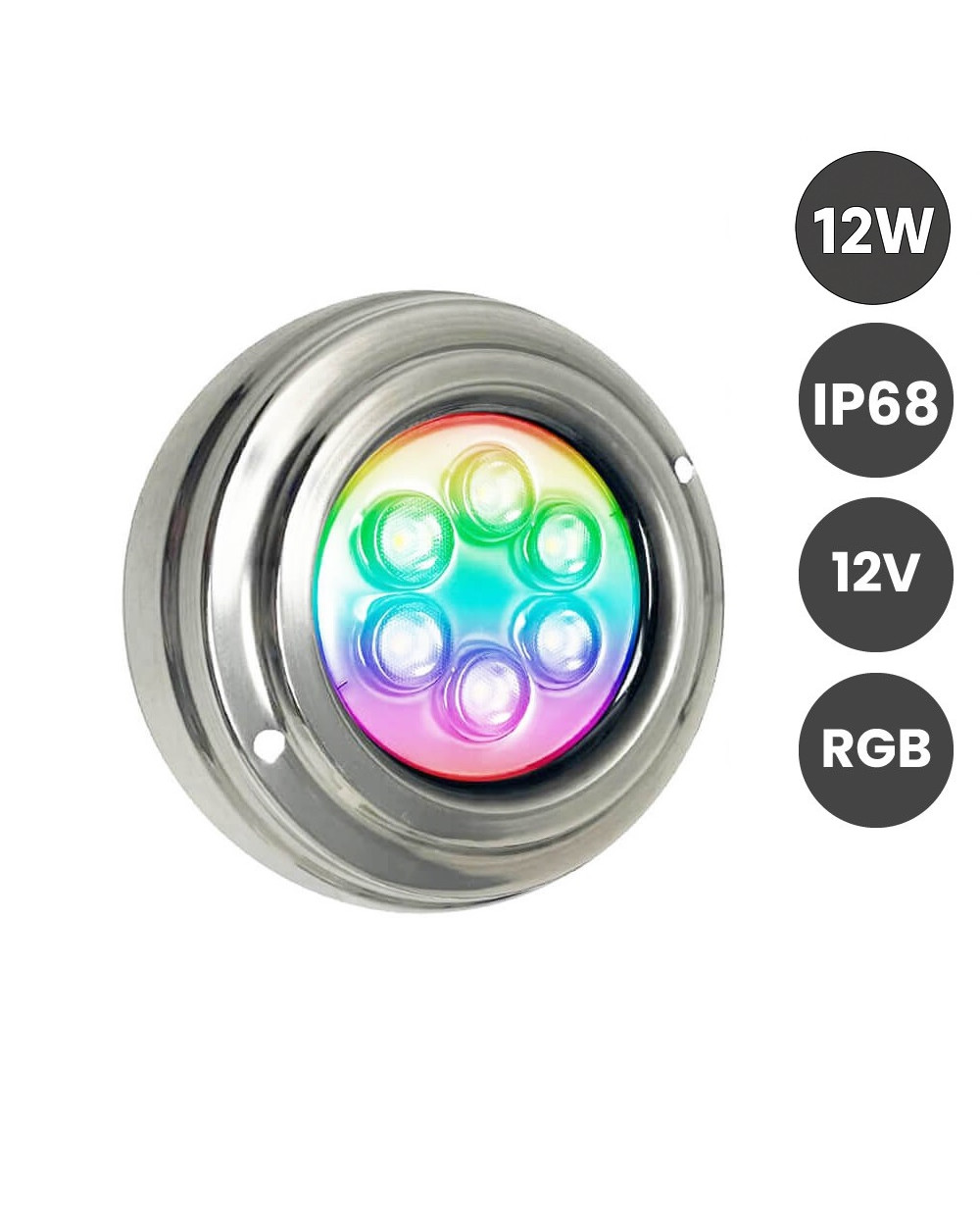 Vista rápida Lámpara LED RGB Sumergible... Lámpara LED 18w RGB con IP68 diseñada para una inmersión completa y profunda. 50 UNIDADES POR CAJA MASTER FICHA TÉCNICA Lista de deseos