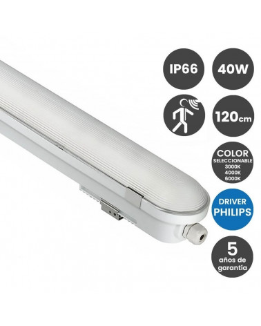 Pantalla Estanca LED 40W Con Sensor Radar Philips Driver XITANIUM COREPLUS EVO CCT 120cm IP66