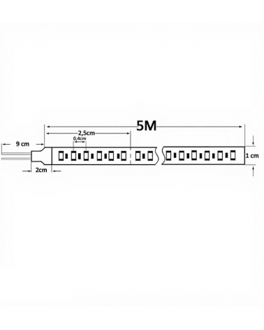 Tira de LED a 24v de 20W/M. Con protección IP20 para interiores. Disponible en rollos de 5 metros con corte cada 2.5cm.
