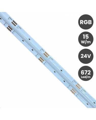 Tira LED COB 24V RGB 15W/M- 672 LED/m IP20- 3 AÑOS DE GARANTIA
