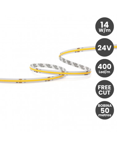 Tira LED COB 24V 14W/M 400 LED/m 1.540 Lm FREE CUT CRI90 IP20 Bobina 50 metros