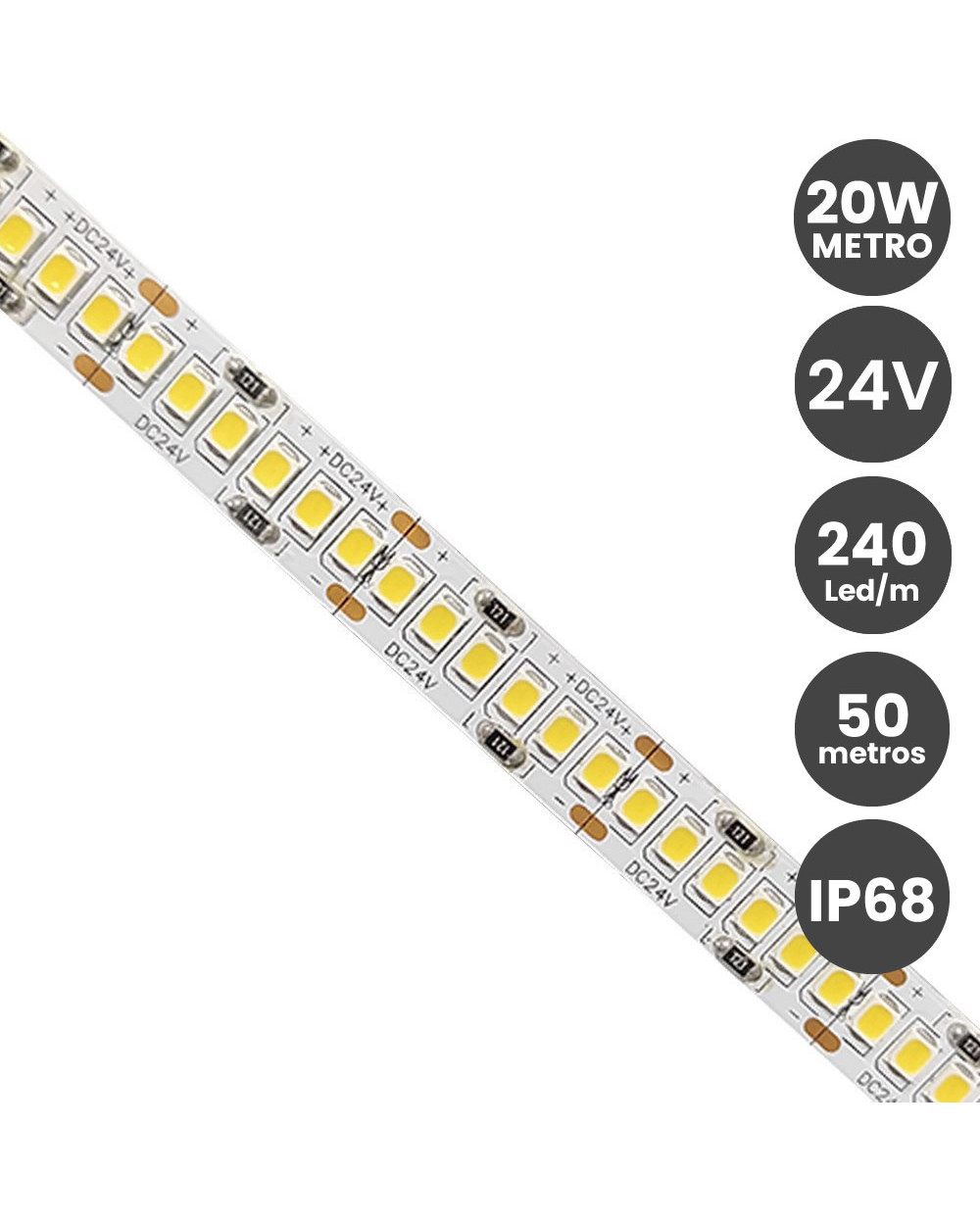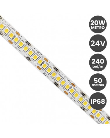 Tira LED 24V 20W/M IP68 - 240xLED/m Bobina 50 metros - 3 años de garantia